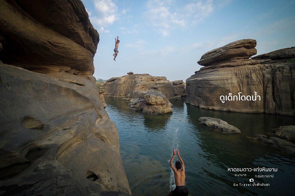 เริ่มเช้าวันใหม่กับสถานที่เที่ยวใกล้ๆ แก่งสะพือ อ พิบูลย์มังสาหาร ชอบชื่ออำเภอต่างๆ ในจังหวัดนี้จัง วันนี้มุ่งหน้าสามพันโบก ตอนแรกว่าจะแวะน้ำตกต่างๆ ของผาแต้ม แต่จนท.บอกว่าอย่าแวะเลยไม่มีน้ำ ก็เลยเวลาเหลือ แบบนี้ก็ตามแพลนครับเทียงๆแดดจัดเงาไม่สวยต้องหาที่นอนตากแอร์อีกแล้ว 555