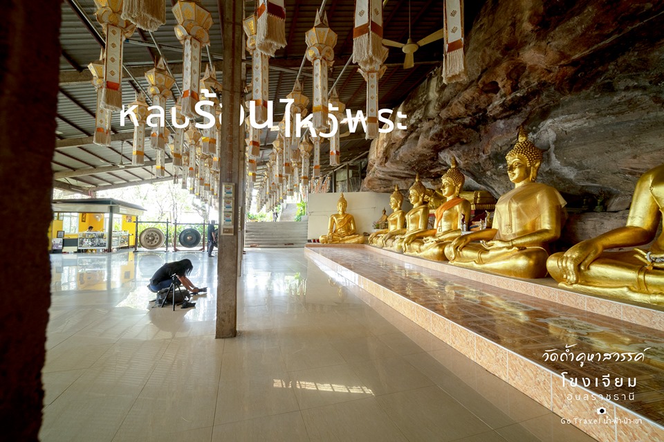 มีโพรงถ้ำ ไม่เชิงเป็นถ้ำนักหรอก แต่ก็เย็นๆ ดีน่านอนหลับ มีพระเรียงเป็นแถว